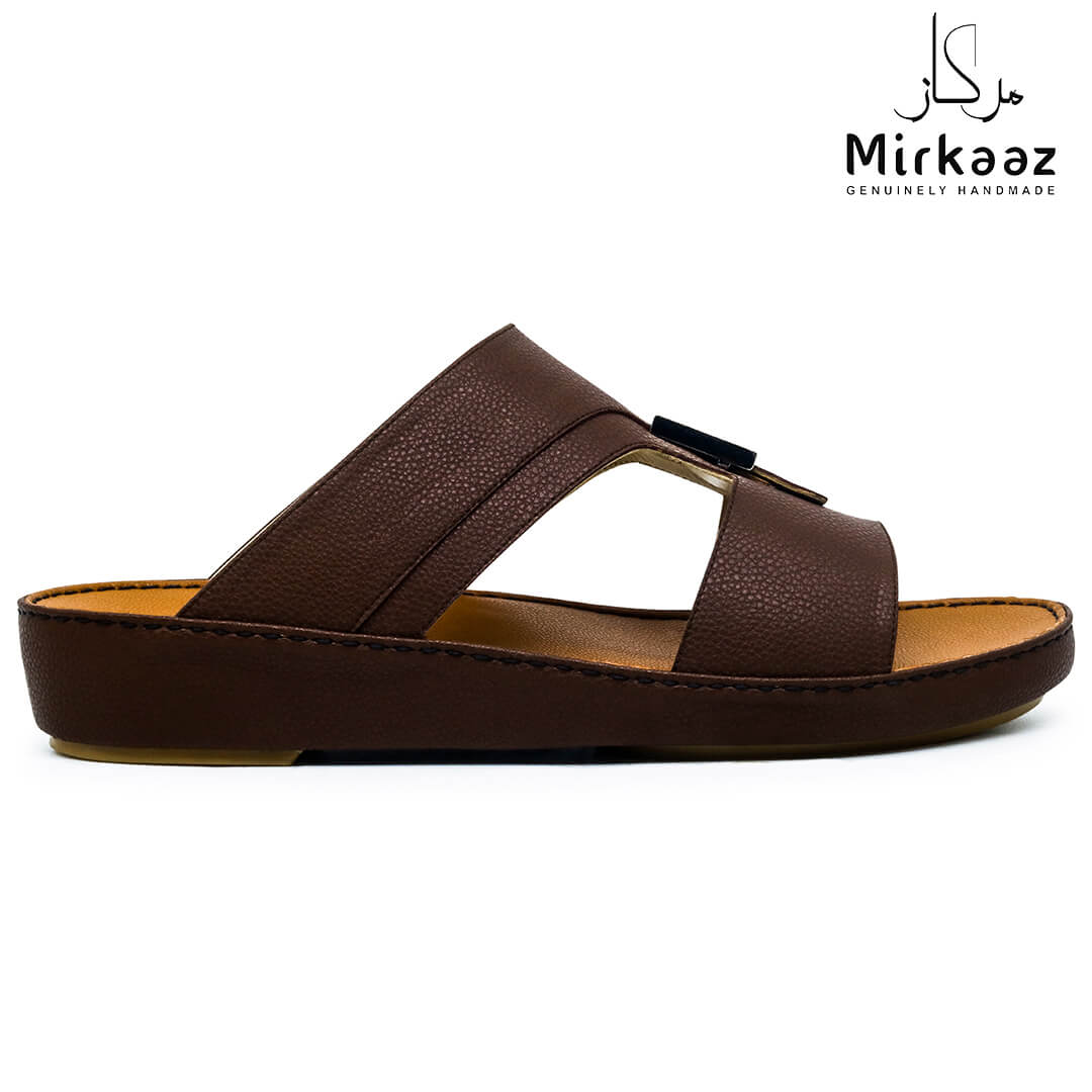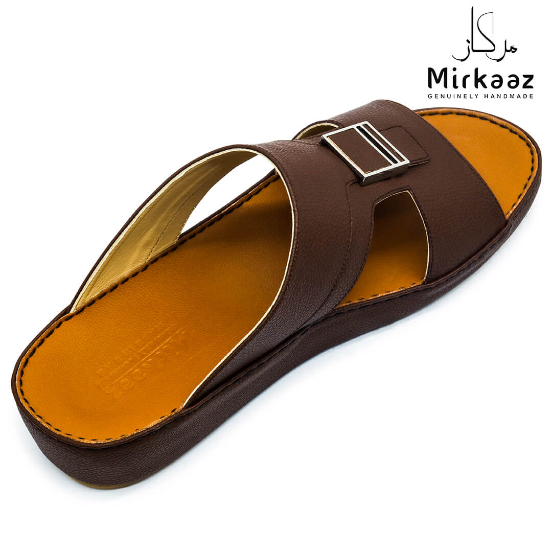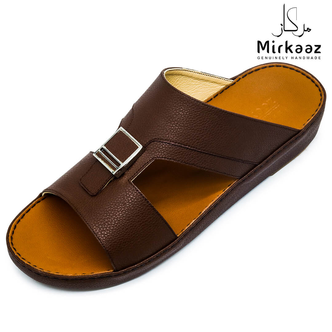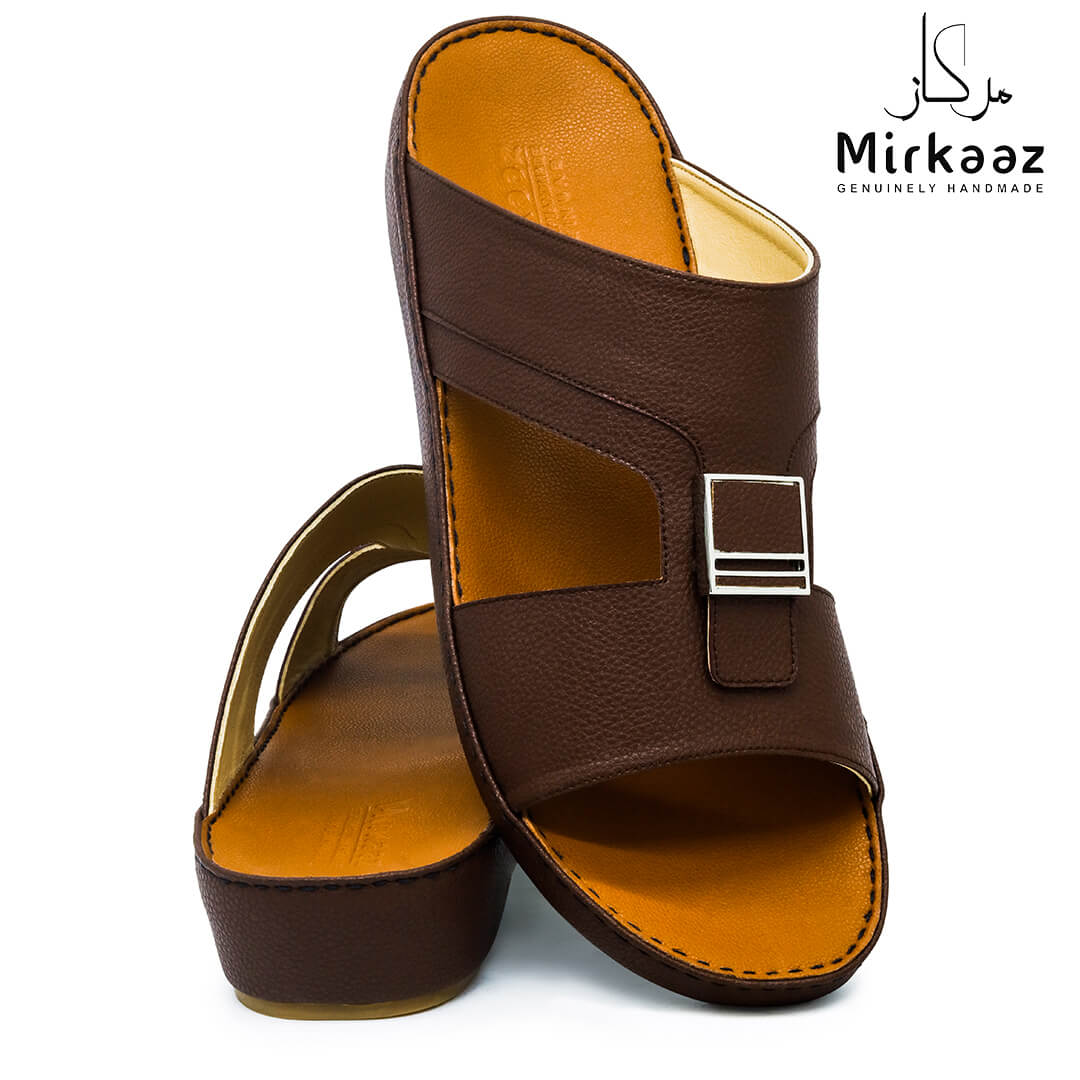 Keep your feet comfortable and safe with these unique leather sandals from the house of Mirkaaz, UAE . This rich patterned sandal is perfect for all occasions. Crafted from a rich quality material, they are light weight and highly safe because of its 'Anti-slip' grip bottom. This pair of Leather sandals is durable, crafted by professional hands in UAE. If you want to walk in comfort and style alike, opt for this pair.