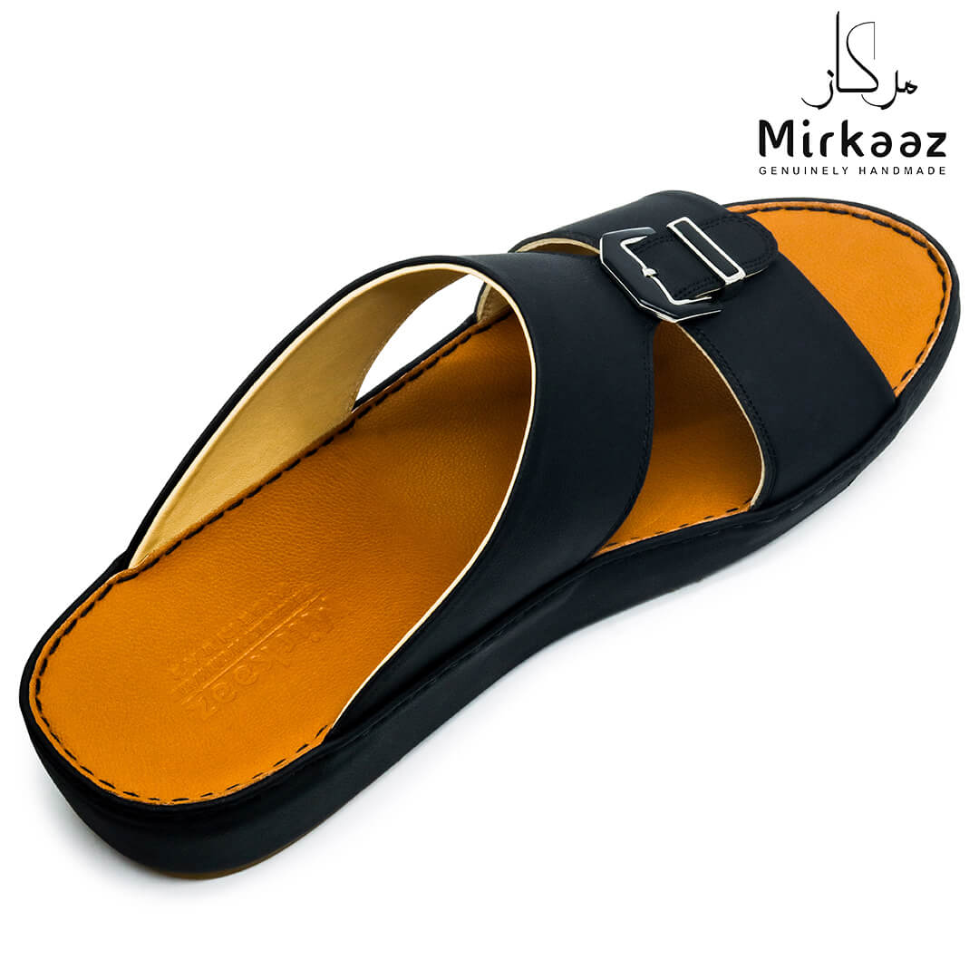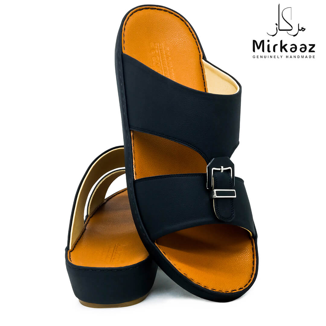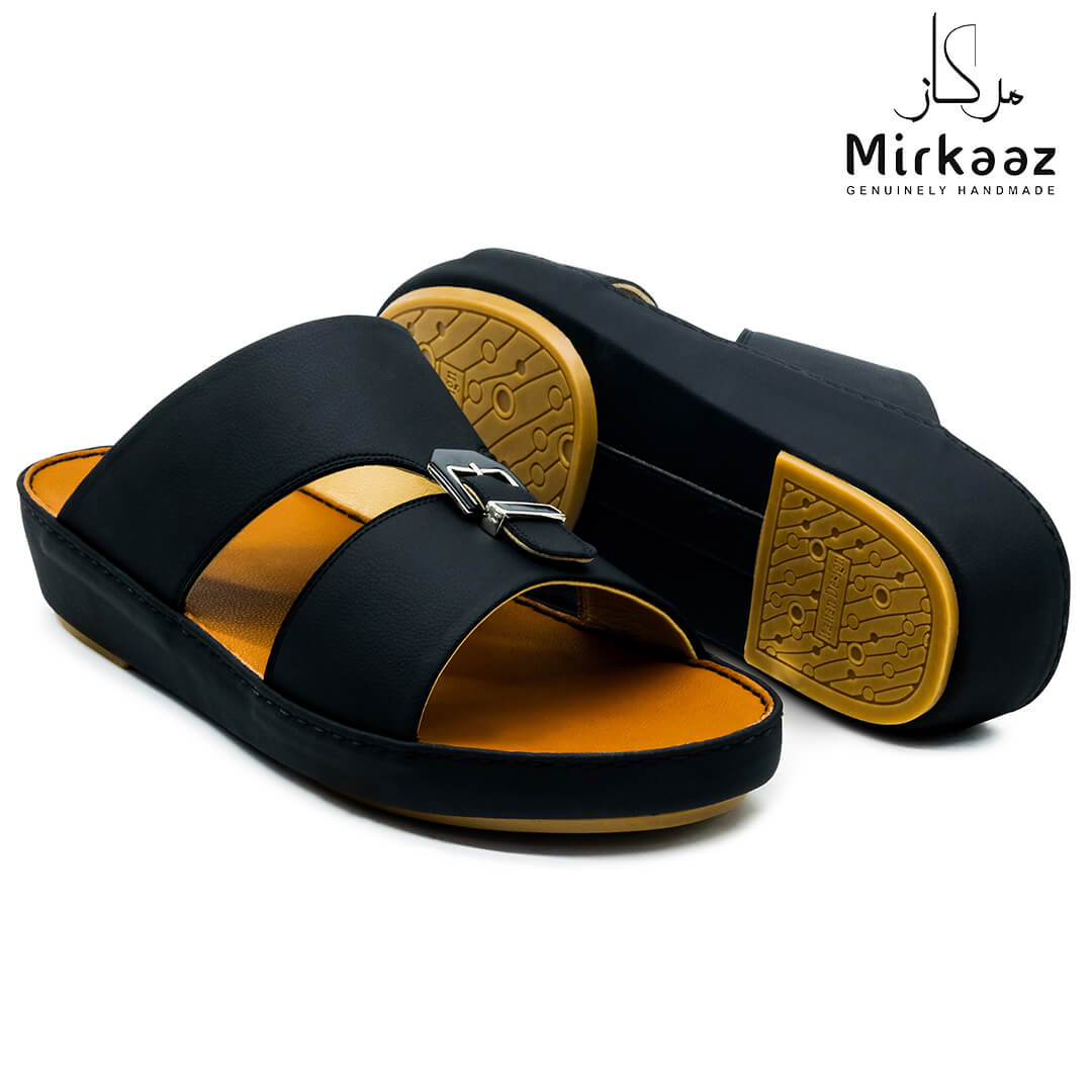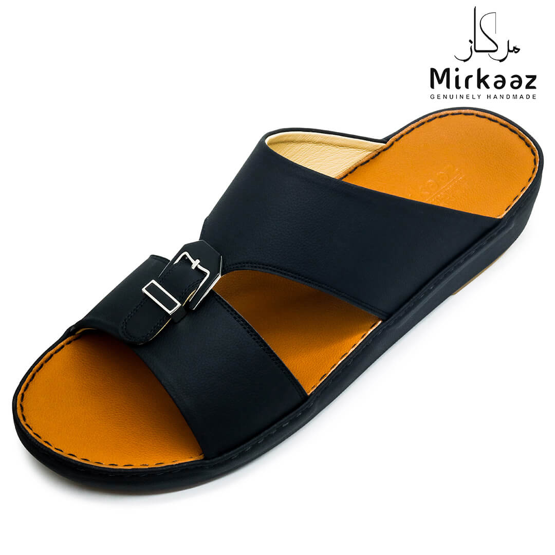 Keep your feet comfortable and safe with these unique leather sandals from the house of Mirkaaz, UAE . This rich patterned sandal is perfect for all occasions. Crafted from a rich quality material, they are light weight and highly safe because of its 'Anti-slip' grip bottom. This pair of Leather sandals is durable, crafted by professional hands in UAE. If you want to walk in comfort and style alike, opt for this pair.