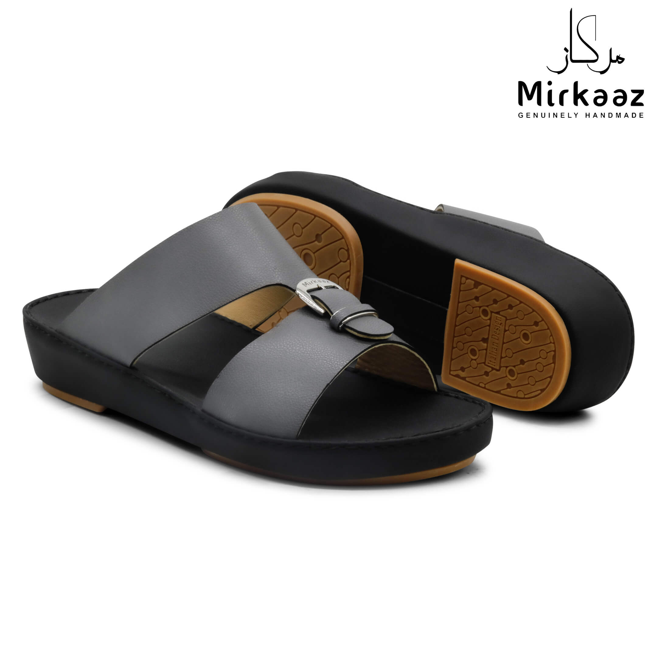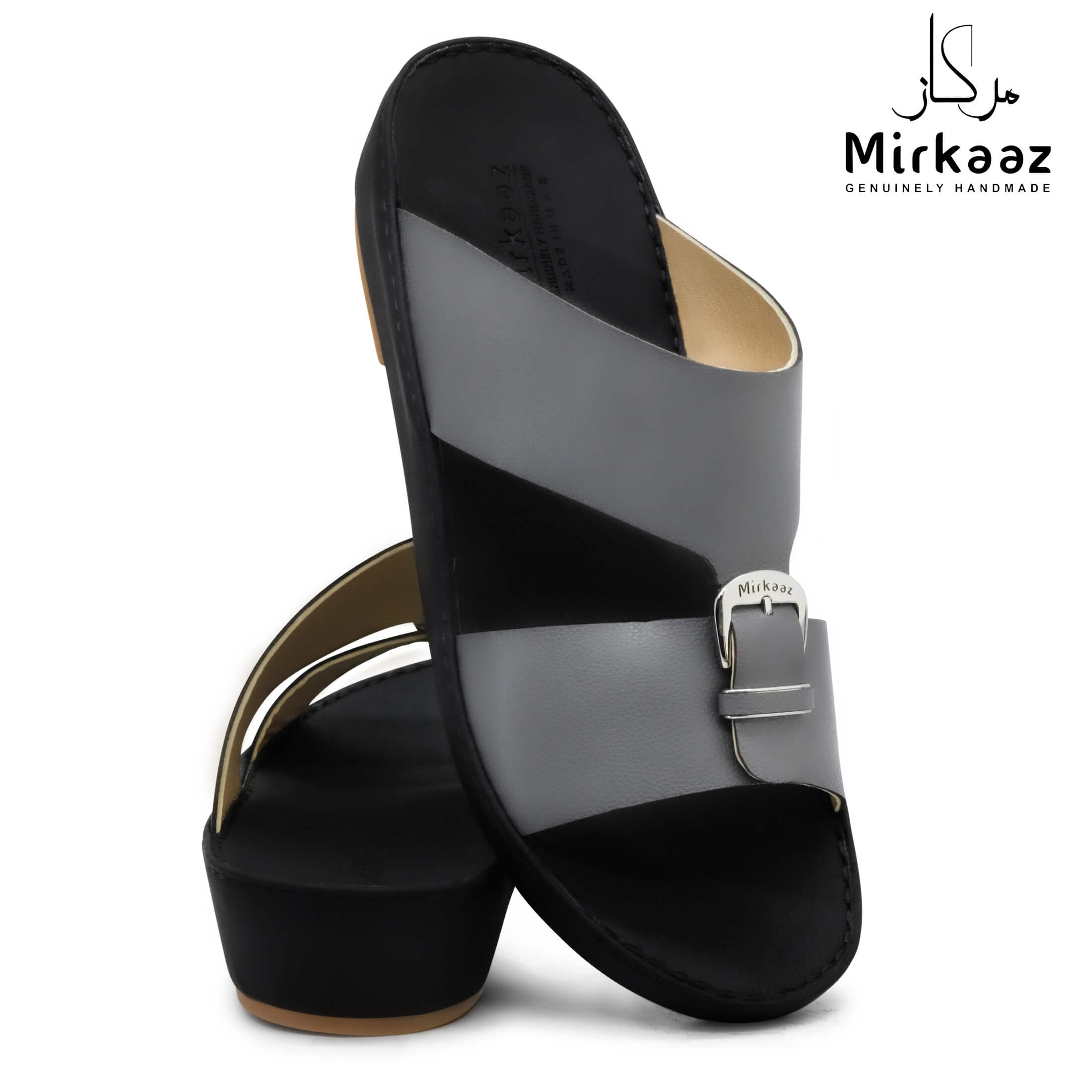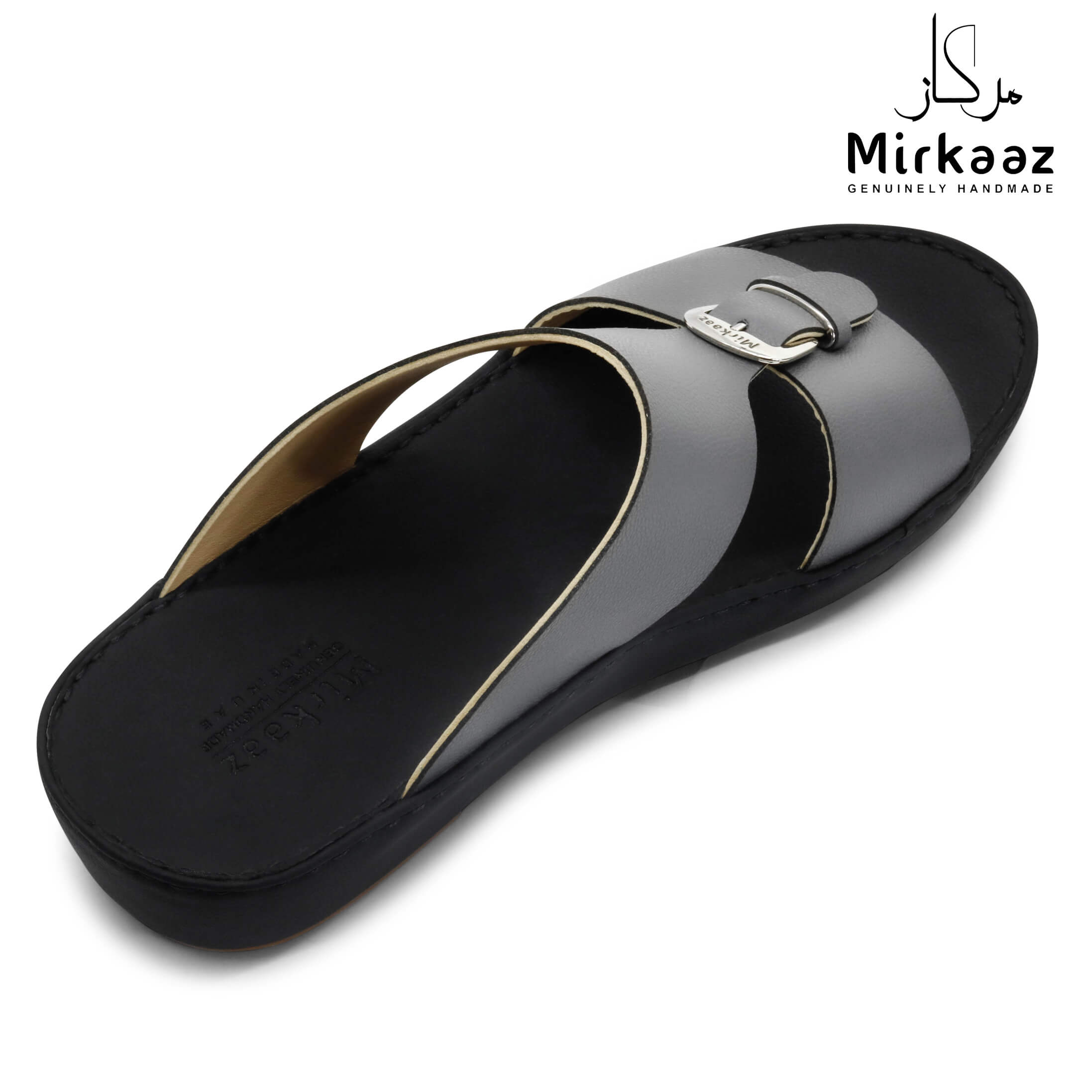 حافظ على راحة وسلامة قدميك من خلال صنادل الجلد المميزة من دار ميركاز في الإمارات العربية المتحدة. فهذا الصندل الغني بالنقوش مثالي لجميع المناسبات. صندل مصنوع من مواد عالية الجودة تتميز بخفة وزنها ومستوى أمانها العالي بفضل النعل "المقاوم للانزلاق". كما أن هذا الصندل الجلدي مصمم ليتحمل الاستعمال لفترة طويلة وتمت صناعته بواسطة متخصصين محترفين في الإمارات. فإذا كنت تريد أن تمشي بكل راحة وأناقة فلا تتردد في اقتناء هذا الصندل. هذا النعل مصنوع من الداخل من مواد عالية الجودة من البولي يوريثان الذي يتميز بالخفة والمتانة. تمت حياكته يدويًا باستخدام خيط مضفر قوي وتدوم الحياكة لفترة طويلة جدًا. تمنع بطانة النعل الداخلية المصنوعة من مواد عديمة الرائحة تراكم أي نوع من الروائح على سطحها مما يجعلها دائمًا نظيفة حتى بعد الاستخدام الطويل. يوفر المصنع ضمان 6 أشهر للحياكة والنعال